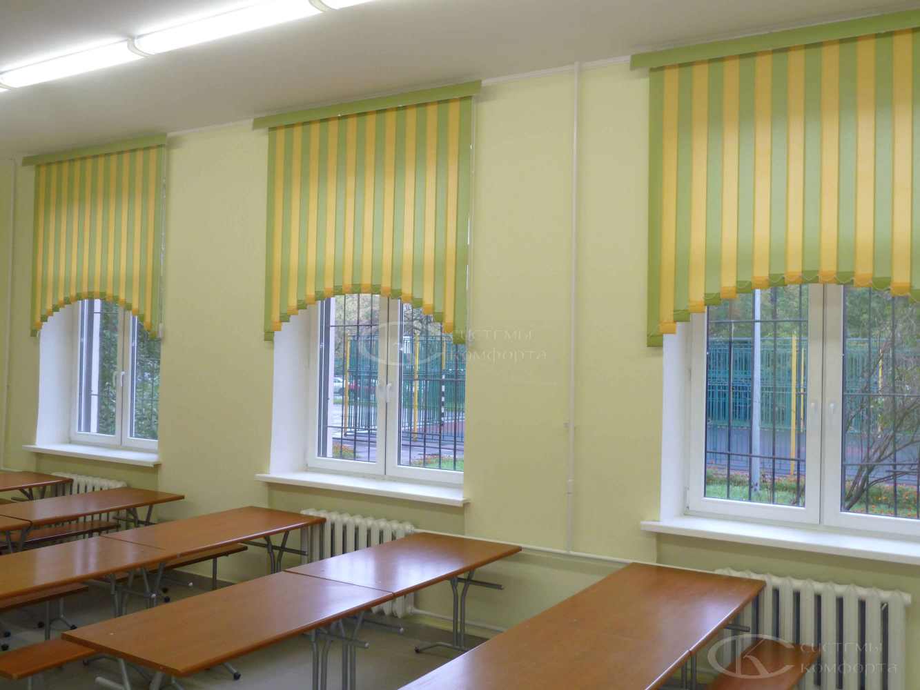 Вертикальные жалюзи часто используют в школе по причине функциональности и экономичности. Такие жалюзи позволяют быстро регулировать световой поток, но они же чаще всего и ломаются. Из-за неправильной эксплуатации тканевые ленты и пластиковые элементы путаются и обрываются. Особенно часто ломаются при проветривании помещения. Если неправильно выбрать высоту изделия, то они будут сметать грязь с пола или с подоконника.