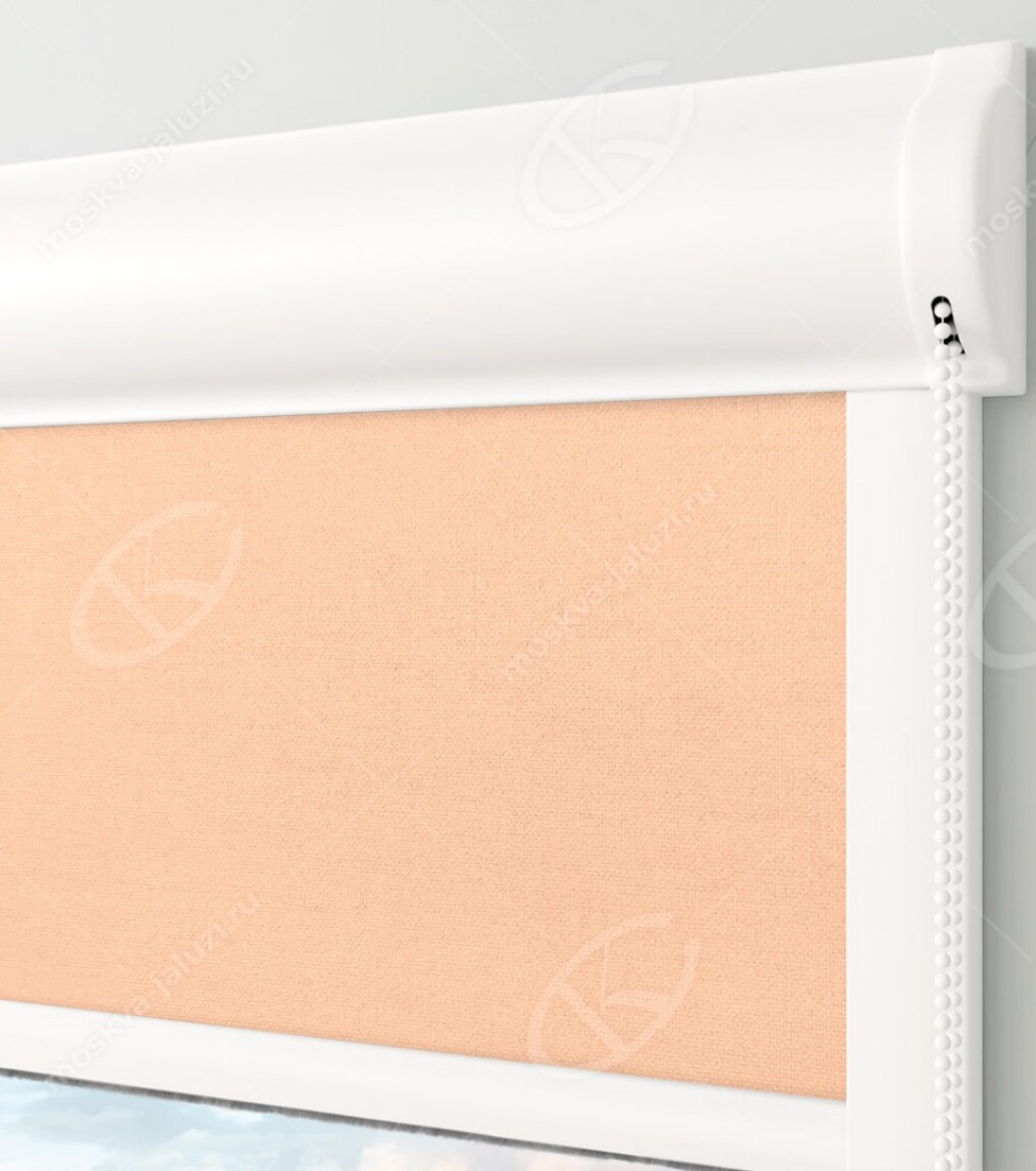 Кассетные рулонные шторы Уни-2 – Карина персиковый – хороший выбор для управления освещенностью комнаты: это оптимальное соотношение цены и качества. Кассетные рулонные жалюзи легко устанавливаются и управляются: для подъёма и опускания полотна предусмотрена тканевая цепочка. При открытом положении ткань размещается в пластиковом коробе, при закрывании она перемещается по направляющим.