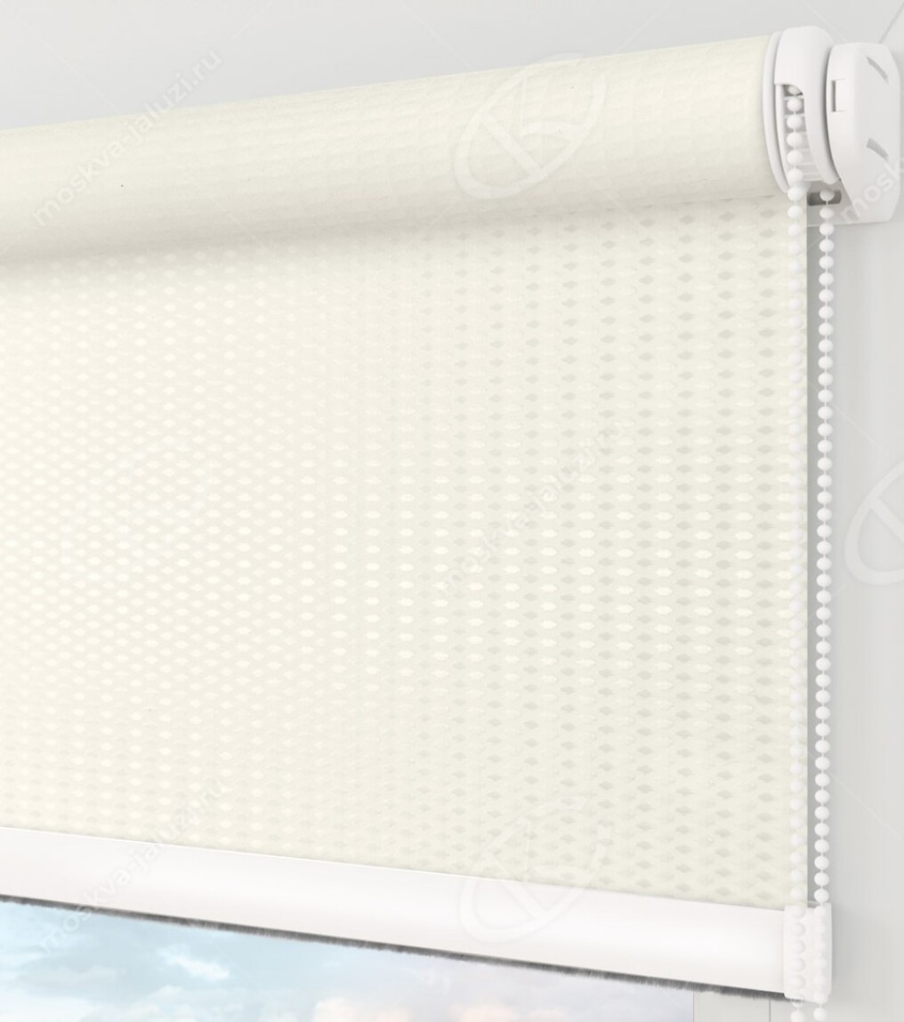 Рулонные шторы Мини – Севилья блэкаут молочный — одна из самых распространенных систем управления освещенностью комнаты. Полотно рулонных штор легко поднимается и опускается, для управления может использоваться цепочка из металла или пластика. Величина вала, на который наматывается полотно, будет зависеть от его длины и ширины, это нужно учитывать при подборе подходящей рулонной шторы.