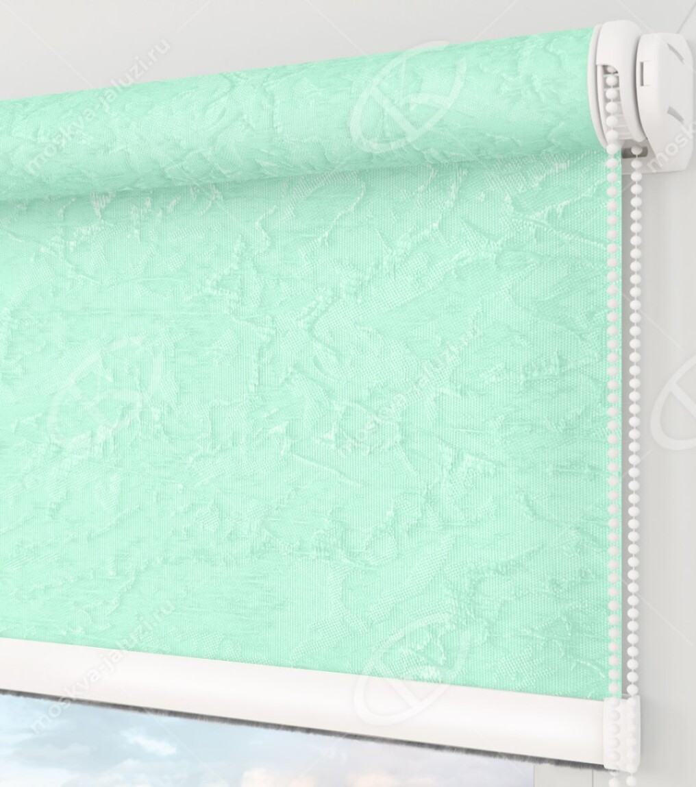 Рулонные шторы Мини – Шелк салатовый — одна из самых распространенных систем управления освещенностью комнаты. Полотно рулонных штор легко поднимается и опускается, для управления может использоваться цепочка из металла или пластика. Величина вала, на который наматывается полотно, будет зависеть от его длины и ширины, это нужно учитывать при подборе подходящей рулонной шторы.