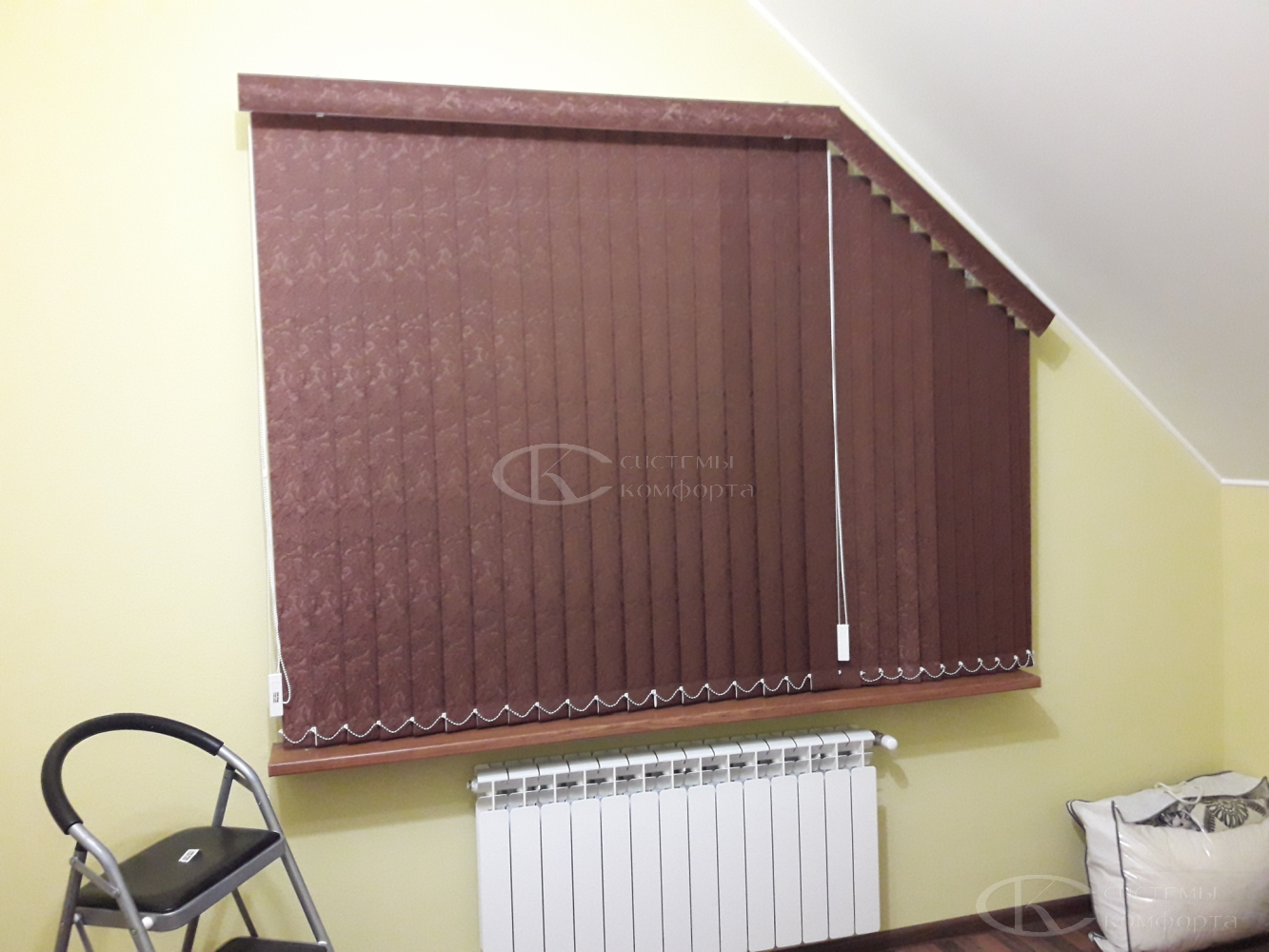 Вертикальные жалюзи могут закрыть большие пространства: панорамные окна, балконы, стеклянные стены, нестандартные окна в форме треугольника, трапеции, круга. По желанию наносится фотопечать — любое фото, детский рисунок или изображение.